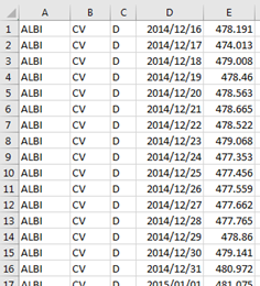This example loads information for money market indices on a daily basis. The information that is loaded into Quintessence is Name, Asset Class and Total Return Prices for a series of dates for each index.